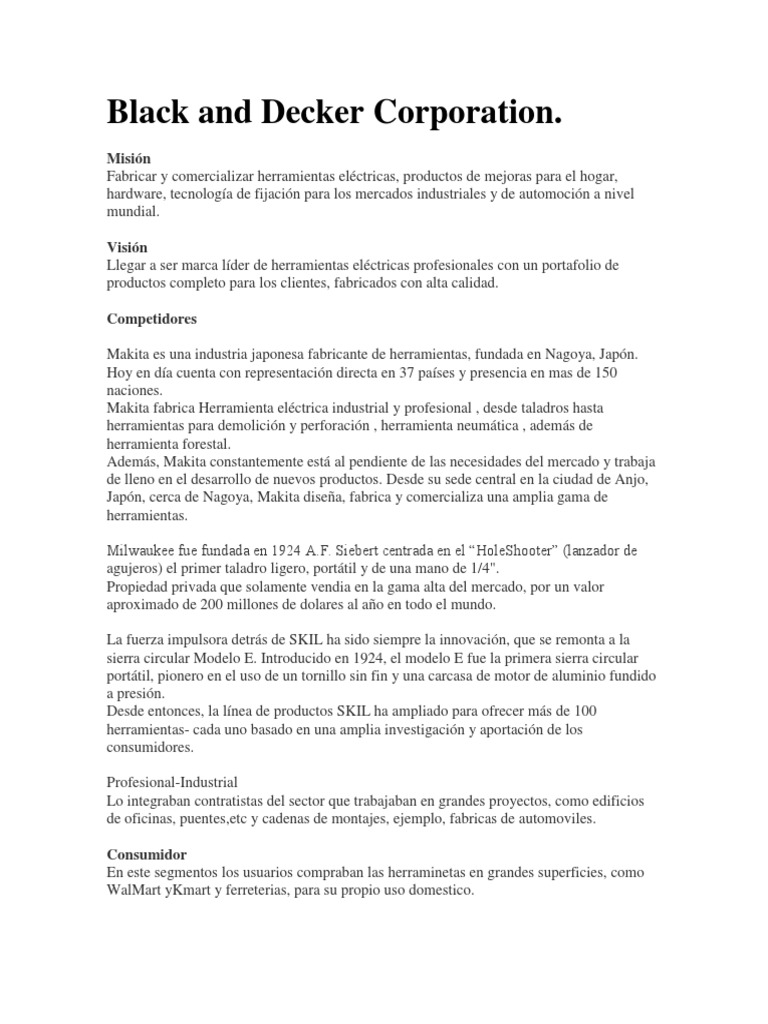 32+ elegant Sammlung Black And Decker Mission Statement - Hmdonovan 3 16 / Stanley black & decker's ceo james m.. So it's irregular and infrequent (read: The black & decker corporation. Swot analysis of black & decker analyses the brand/company with its strengths, weaknesses, opportunities & threats. On march 12, 2010, stanley completed a merger (the merger) with the black & decker corporation (black & decker). At stanley black & decker, we have always seen doing well and doing good as two sides of the same coin.